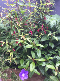 Voici comme promis comment évolue ce petit jardin/terrasse. Du printemps à l'été, les promesses sont tenues... les boules blanches de l'hortensia annabelle jouent avec les fleurs délicates des heuchères, le trachéospernum élancé à l'assaut de l'arche et le seringat embaument l'air ambiant d'un parfum doux et sucré, le fuschias s'épanouit pour fleurir sans discontinuer jusqu'aux premiers froids. Du côté du coin gourmand, les aromatiques se sont bien développées. Le myrtillier, le murier, le poirier, le pommier et les fraisiers ont formés leurs premiers fruits. Les pieds de tomates bien exposés promettent une belle récolte. Bonne visite !